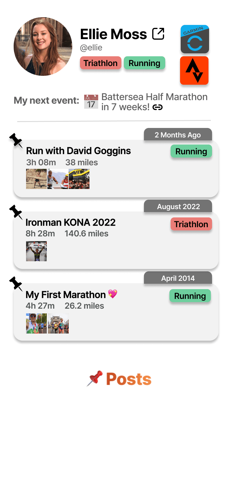 Pin your standout races and milestones in one place. Create a page that highlights your proudest moments and makes them easy to find.